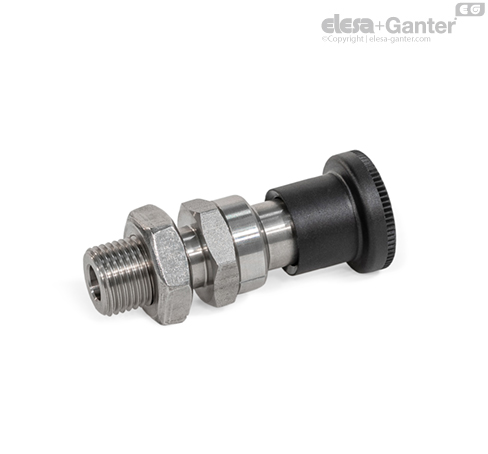 İndeksleme pistonları GN 824, kare kesitli bir piston pimine, bir tarafında bir mandallama yüzeyine ve diğer tarafında bir oluğa sahiptir. Sabitlenecek nesne oluğa doğru hareket ettiğinde, piston pimi kılavuza geri itilerek olukların ve kenarların pimin üzerinden geçebilmesi sağlanır. Pim, kilitleme yüzeyine doğru hareket ettirildiğinde otomatik olarak yerine kilitleşir. Mandallama, topuz çekilerek serbest bırakılabilir.