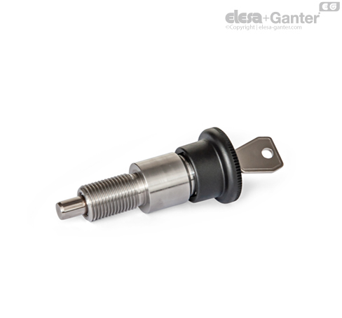 Kilitlenebilir Paslanmaz Çelik-İndeksleme pistonları GN 814, yetkisiz çalıştırmanın önlenmesi gereken uygulamalarda kullanılır. Tip A ve AK, kilitleme sonrasında piston pimini ön konumda sabitler. Tip E ve EK, geçici olarak çıkıntı yapmayacaksa piston pimini ilave olarak arka konumda da sabitler.