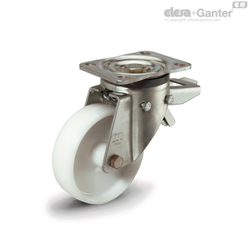 Ön fren (RE.F8-100-125) veya arka fren (RE.F8-150-200), çark ve braketi eş zamanlı kilitleyen çift etki. Frenin kullanımı basit ve etkilidir: iki ayrı pedalın ucunda üstten aşağıya doğru tek bir hareketle harekete geçirilir ve serbest bırakılır, böylece son derece yüksek manevra konforunu garantiler. Arka frenli tekerleklerde frenleme etkinliği M8 soket başlı vida ile ayarlanabilir.