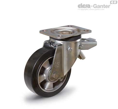 Çark ve braketi eş zamanlı kilitleme özellikli çift etkili arka fren. Frenin kullanımı basit ve etkilidir: iki ayrı pedalın ucunda üstten aşağıya doğru tek bir hareketle harekete geçirilir ve serbest bırakılır, böylece son derece yüksek manevra konforunu garantiler. Arka frenli tekerleklerde frenleme etkinliği M8 soket başlı vida ile ayarlanabilir.