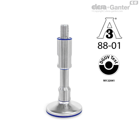 Dengeleme ayağı GN 19, 3-A hijyen standardı 88-01’e ve DGUV test ilkelerine uygunlukları sayesinde hijyenik alanlarda kullanım için uygundurlar