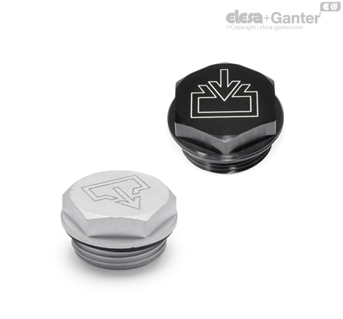 Dişli tapalar GN 741, BSP vida dişi delikleri DIN 3852'ye uyacak şekilde d1 dış çapına sahiptir.