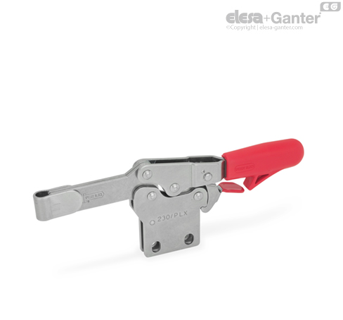 İki flanşlı contalı U-çubuk versiyonundaki yatay hareketli manivelalı kıskaçlar (Tip NL), uygulamaya özel sıkıştırma vidasına uyum sağlar. Tip NLC için neopren kauçuk uçlu bir sıkma vidası da mevcuttur.
