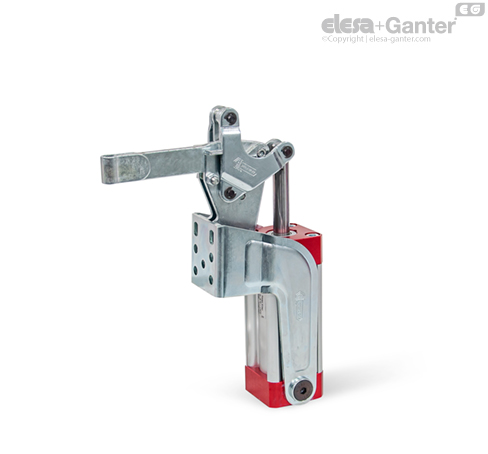 GN 862 pnömatik manivelalı kıskaçların sıkıştırma prensibi, yapı ve boyutlar bakımından elle çalıştırılan dikey manivelalı kıskaçlarla aynıdır GN 812.