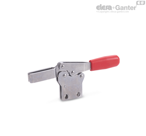 GN 820.1 yatay etkili manivelalı kıskaç, menteşe hareketi prensibine göre çalışır: kol ve sıkıştırma çubuğu karşıt yönde hareket eder.