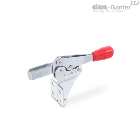 GN 820.2 yatay hareketli manivelalı kıskaçlar mafsal prensibine göre çalışır: kaldırma kolu ve sıkıştırma çubuğu zıt yönde hareket eder.