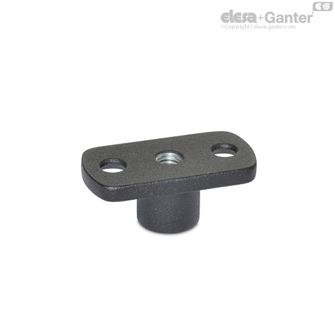Dişli flanşlar GN 3490, T yuvalı profil sistemleri ile birlikte kullanılır ve parçaların profillerin üzerine ya da altına monte edilmesini sağlar, örn. dengeleme ayakları.