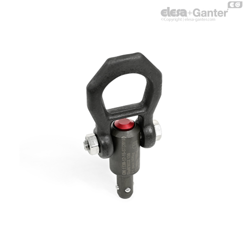 GN 1130 kaldırma pimleri, hızlı ve kolay kullanım için tasarlanmış kaldırma parçalarıdır. Kırmızı alüminyum düğmeye basıldığında kilitleme bilyesinin kilitleme etkisini serbest bırakarak, yüklü cıvatanın tutma deliğinin içine ve dışına hareket etmesine olanak verecektir. Kilit baklası, kazara çalışmaya karşı koruyucu olarak takılan güvenlik flanşı ile 180° döner. Çekme yönüne bağlı olarak, bilye yüklü cıvata tutma deliği içinde 360° serbestçe hareket edebilir.