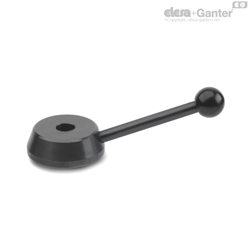 Kontrol kolları GN 211, karşılaştırılabilir bir biçimde büyük göbek çapları nedeniyle indeksleme elemanları, açı sınırlamalarına yönelik yivlerle bağlantılı olarak kullanılabilir.