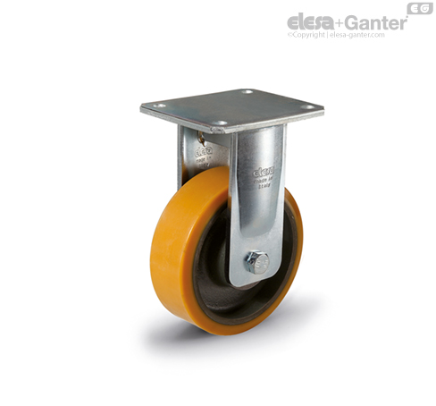 Ağır endüstriyel uygulamalar ile yan darbe ve yüksek hızlar gibi sert kullanım koşulları için uygundur. Dökme kalıplı poliüretan çark, mükemmel yuvarlanma direnci ve esneklik, aşınma ve yırtılmaya karşı yüksek direnç garantiler. Daha fazla bilgi için bkz. RE.F4.