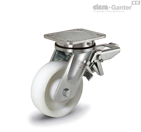 Elektrolitik olarak galvanizli elektrikli kaynaklı çelik. Eksensel ve konik yatağın bulunması, tam yüklüyken mükemmel bir manevra kabiliyetini garantiler ve braketin yan darbelere karşı direncini artırır. Yağlayıcı ve kilitleme somununun gevşeme önleyici sistemi ile donatılmıştır. Braket 9000N'a kadar yüklere dayanacak şekilde tasarlanmıştır. Ağır endüstriyel uygulamalar ile darbe ve yüksek hızlar gibi ağır kullanım koşulları için uygundur.