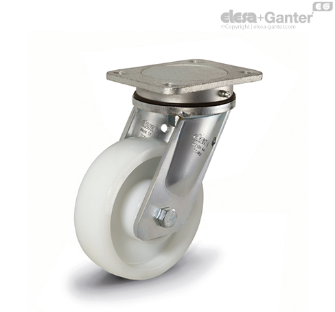 Elektrolitik olarak galvanizli elektrikli kaynaklı çelik. Eksensel ve konik yatağın bulunması, tam yüklüyken mükemmel bir manevra kabiliyetini garantiler ve braketin yan darbelere karşı direncini artırır. Yağlayıcı ve kilitleme somununun gevşeme önleyici sistemi ile donatılmıştır. Braket 9000N'a kadar yüklere dayanacak şekilde tasarlanmıştır. Ağır endüstriyel uygulamalar ile darbe ve yüksek hızlar gibi ağır kullanım koşulları için uygundur.
