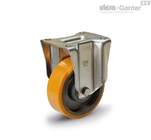 Ağır endüstriyel uygulamalar için uygundur. Dökme kalıplı poliüretan çark, mükemmel yuvarlanma direnci ve esneklik, aşınma ve yırtılmaya karşı yüksek direnç garantiler. Daha fazla bilgi için bkz. RE.F4.
