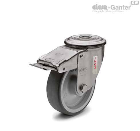 Çark ve braket dönüşünü kilitleyen genel fren. En uygun şekle getirilen boyutlar ve geri çekilebilir pedal, minimal şekilde dolu alanlar ve maksimum harekete geçirme kolaylığını garantiler. Sertleştirilmiş karbon çelik veya paslanmaz çelik (SST versiyon) yay.