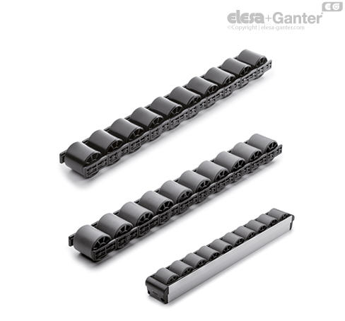 - RLT-U-PA: poliamid bazlı (PA) teknopolimer makaralar, siyah. Çalışma sıcaklığı +90°/-20°C.