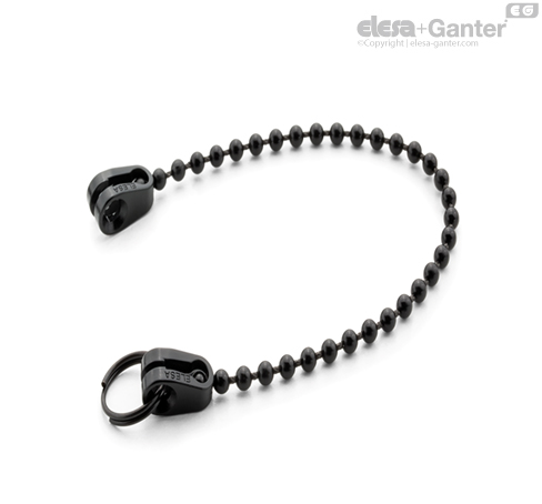 Bilyeli kablo ve asetal reçine bazlı (POM) teknopolimer içinde kavrama başlıkları, siyah renk.