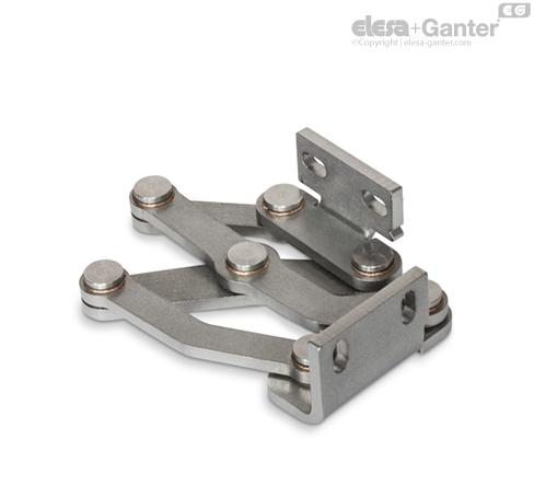 GN 7237 Paslanmaz Çelik-Çok mafsallı menteşeler, yerden tasarruf etmek ve yıkıcı faaliyetlere karşı koruma sağlamak için kapaklar, ambar ağızları ve kapıların içlerine takılır. Menteşeler, maksimum 180° açılma açısına sahiptir; bu da optimum erişilebilirlik sağlar ve örneğin, kaçış yollarının açık kapılar tarafından engellemesini önler.