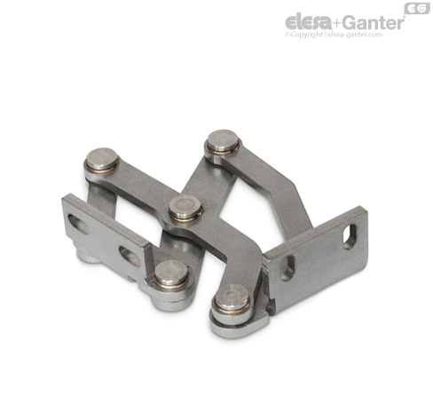 GN 7237 Paslanmaz Çelik-Çok mafsallı menteşeler, yerden tasarruf etmek ve yıkıcı faaliyetlere karşı koruma sağlamak için kapaklar, ambar ağızları ve kapıların içlerine takılır. Menteşeler, maksimum 180° açılma açısına sahiptir; bu da optimum erişilebilirlik sağlar ve örneğin, kaçış yollarının açık kapılar tarafından engellemesini önler.
