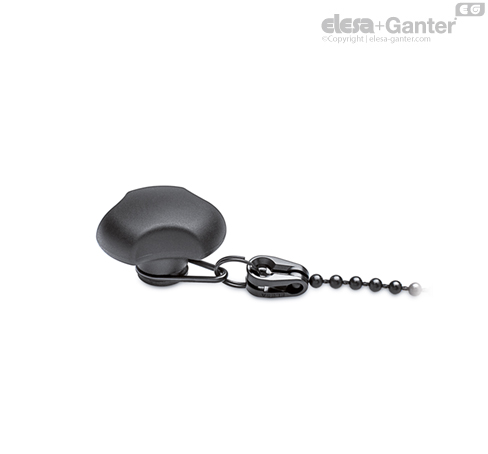 Bilyeli kablo ve asetal reçine bazlı (POM) teknopolimer içinde kavrama başlıkları, siyah renk.