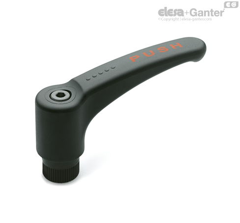 Cam elyafı ile güçlendirilmiş polyamid bazlı (PA) teknopolimer, gri-siyah renk, mat yüzey. Kırmızı ile yazılmış "PUSH" kol gövdesine yazılmış (solventlerden, alkolden veya alkol içeren maddelerden uzak tutulmalı).