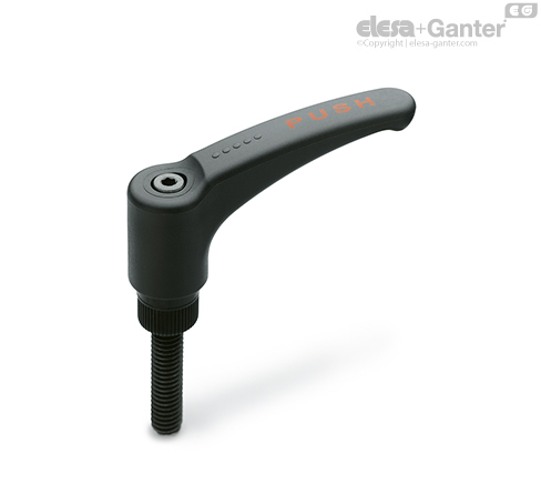 Cam elyafı ile güçlendirilmiş polyamid bazlı (PA) teknopolimer, gri-siyah renk, mat yüzey. Kırmızı ile yazılmış "PUSH" kol gövdesine yazılmış (solventlerden, alkolden veya alkol içeren maddelerden uzak tutulmalı).